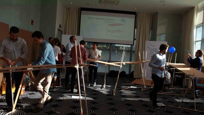 Teams kicked off with designing the bridge with teams networking to discover who their suppliers and customers were and then they got hands on constructing the components of the bridge. Magnificent outcome was achieved by all. It far exceeded our expectations - a complex and rewarding team building activity.